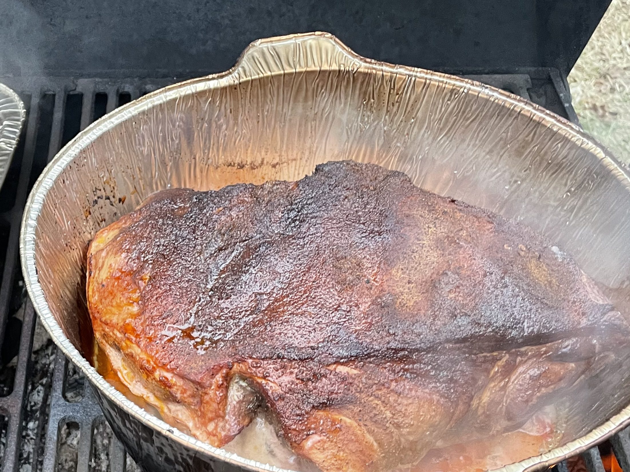 ¾ pound smoked roast pork. I smoked and slow roasted a pork shoulder over hickory wood that I grew. I had used small amount of rub on it, which consisted of salt, black pepper, paprika, garlic, and chipotle powder, but the main flavor arose from the smoking process. Hickory is a new world tree not available in Viking-age Scandinavia; chipotle and paprika peppers are New World crops, while long pepper likely was used in this time period rather than black pepper. There’s very little of the rub present in the finished stew, so I mentioned it mostly in case of potential food allergies; these ingredients were what I had available and I enjoy the flavors they impart to the meat.