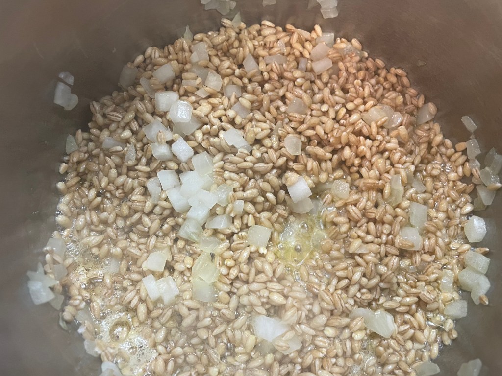 1 ½ cup pearled barley. Serra and Tunberg note that both hulled and naked varieties have been found and that it likely was the most common cereal grain during this period, being consumed in the form of beer, porridge, and flatbreads. Root concurs that it was “the chief bread grain of continental Europe until the sixteenth century” (p. 22) and that it remains a valuable crop in areas where wheat will not grow. I had bought pearled barley before I learned that it has been processed to remove the hull and some of the bran; this makes it a bit less nutritious but also faster to cook than hulled whole-grain barley.